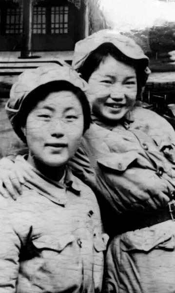 1950年陈雅琴(右)与战友合影